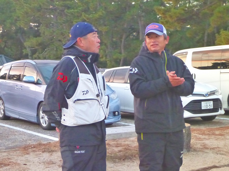 結構良い型も混じって好調だったとの事で、皆で楽しみにしつつ、午前7時に開会式。